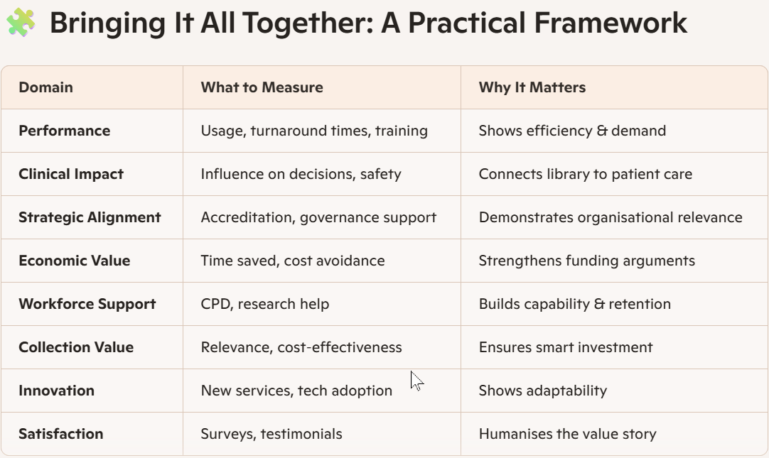 Health Libraries Australia has designed a Value Checklist (Excel):